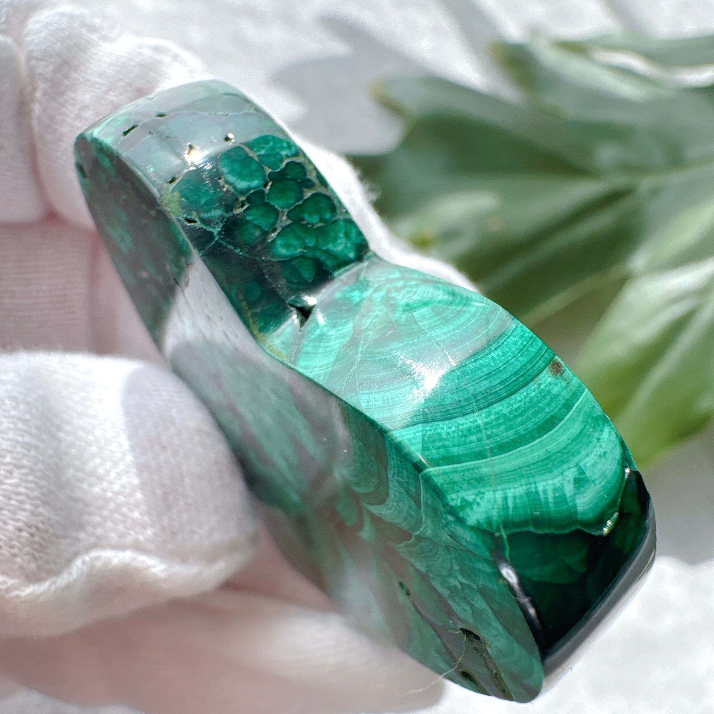 深いグリーンがとてもお洒落な孔雀石です。