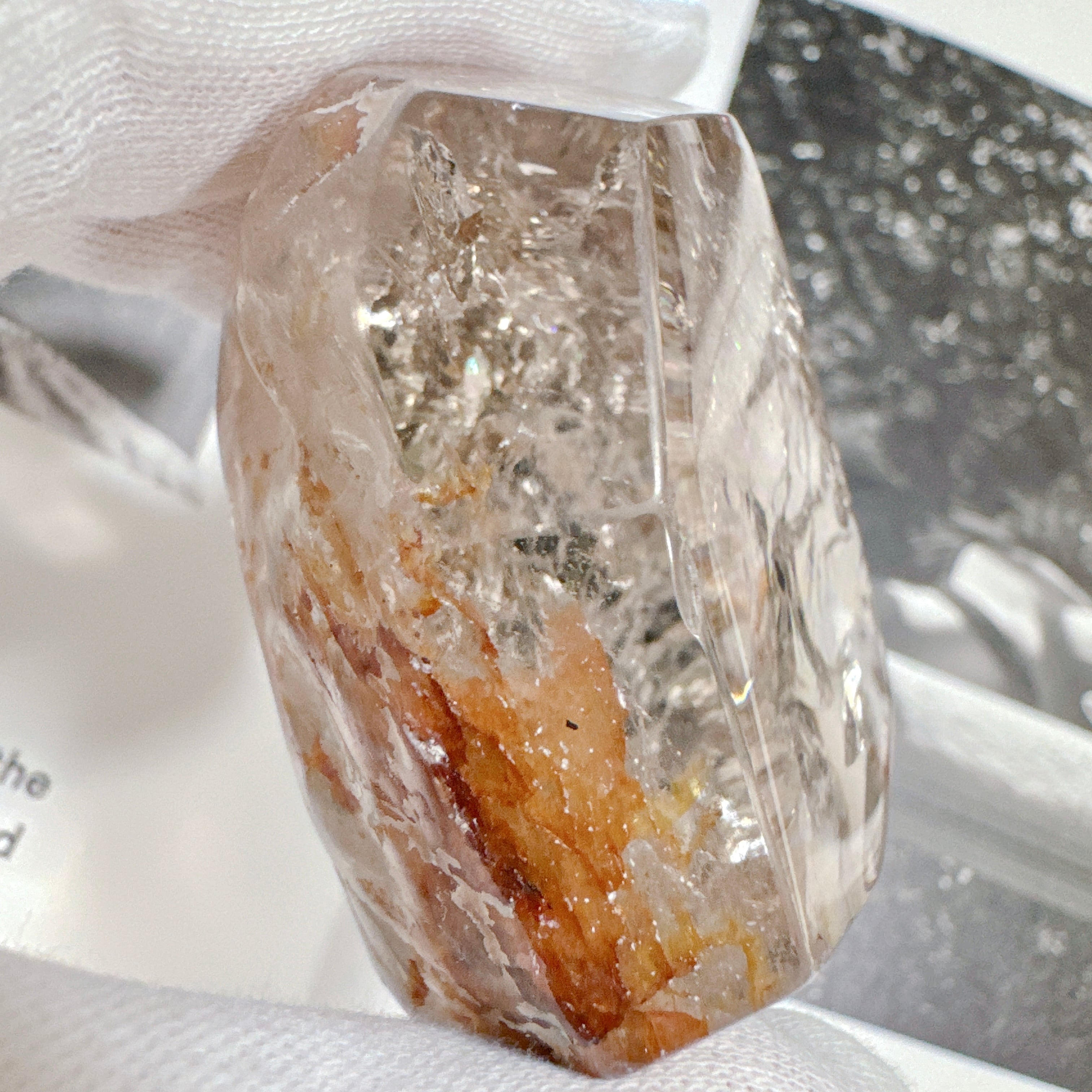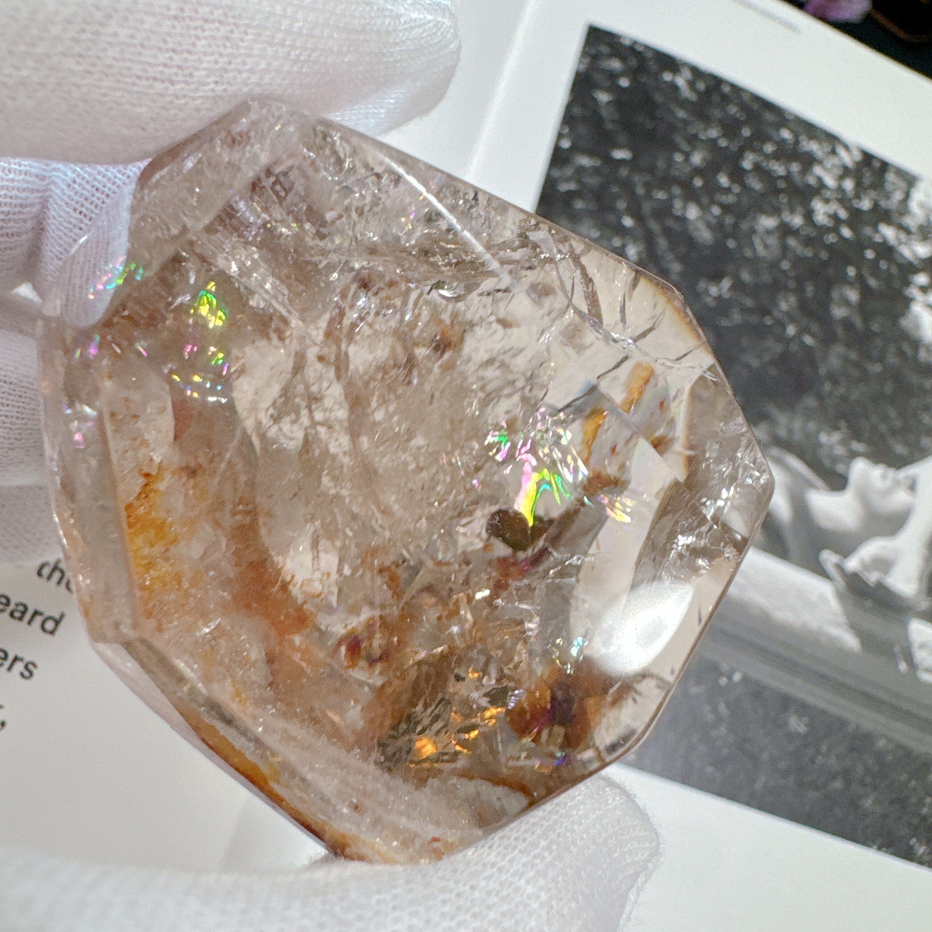 非常に高い透明感と大きな虹を持つ、ゴールデンヒーラー共生のピース。