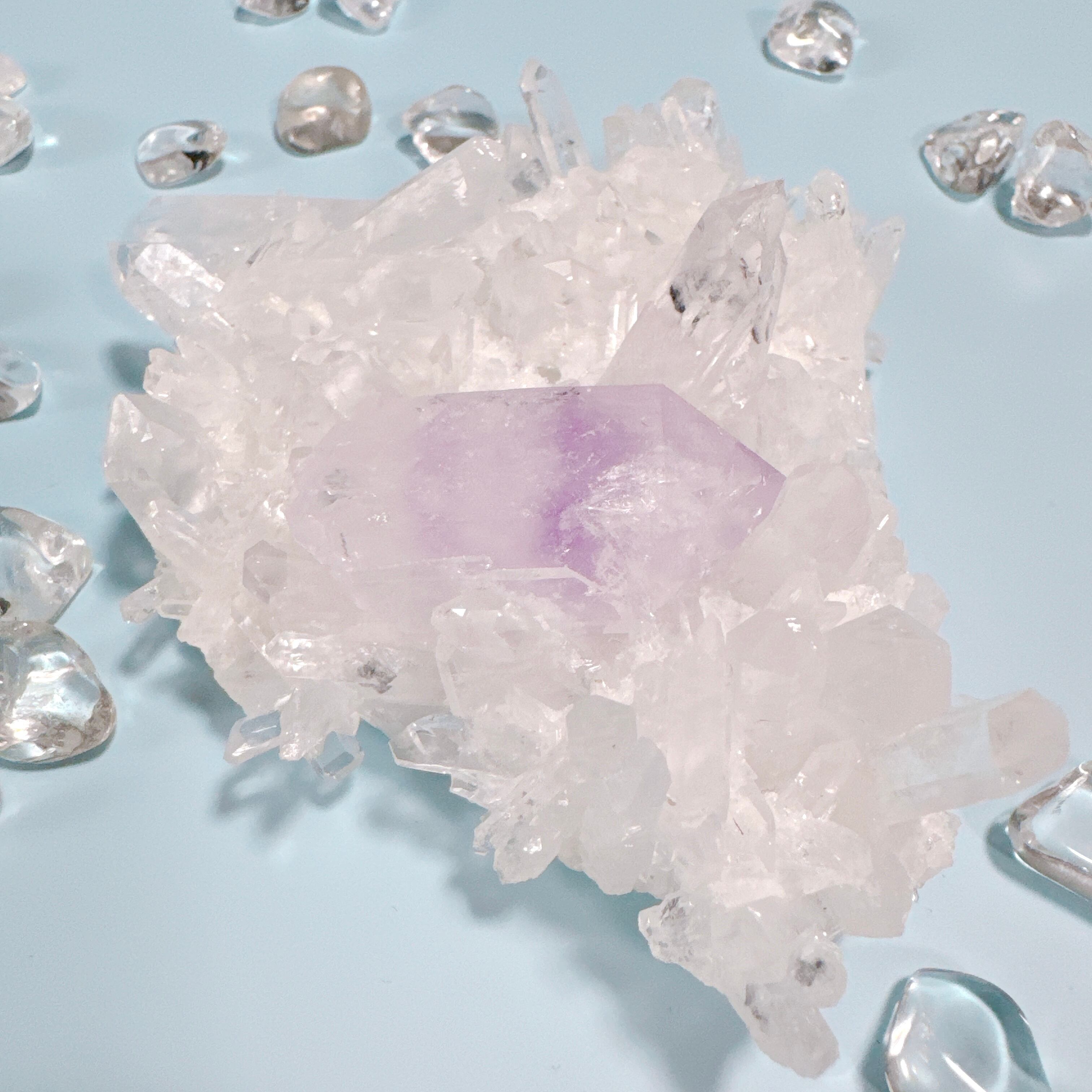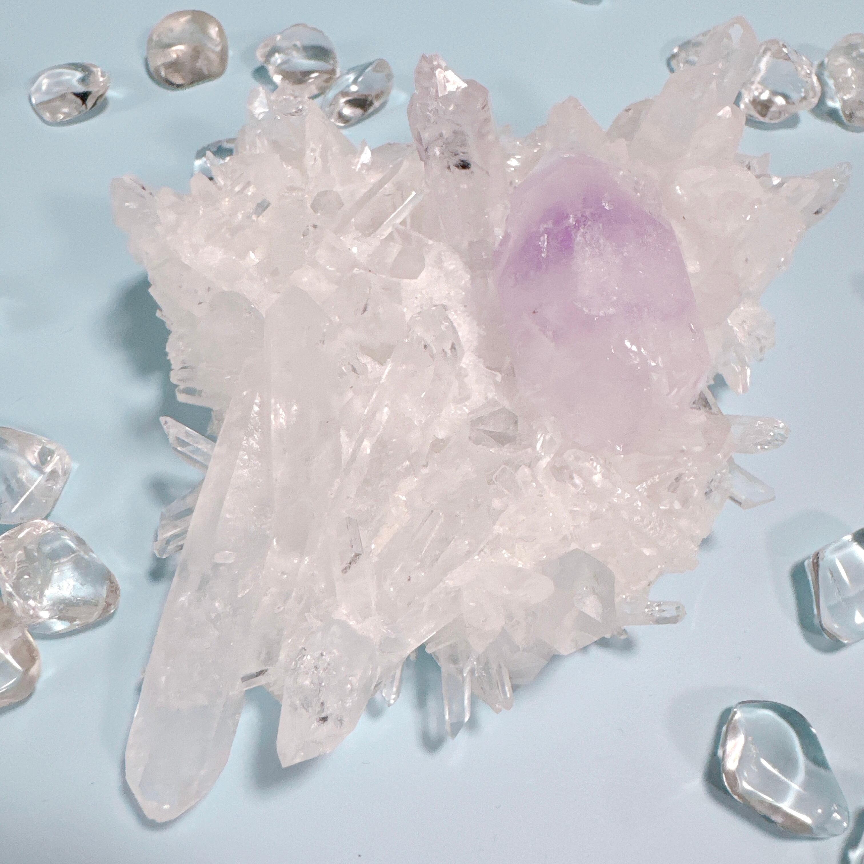 透明度の高い菊花クラスターにアメジストが共生した美しい子。