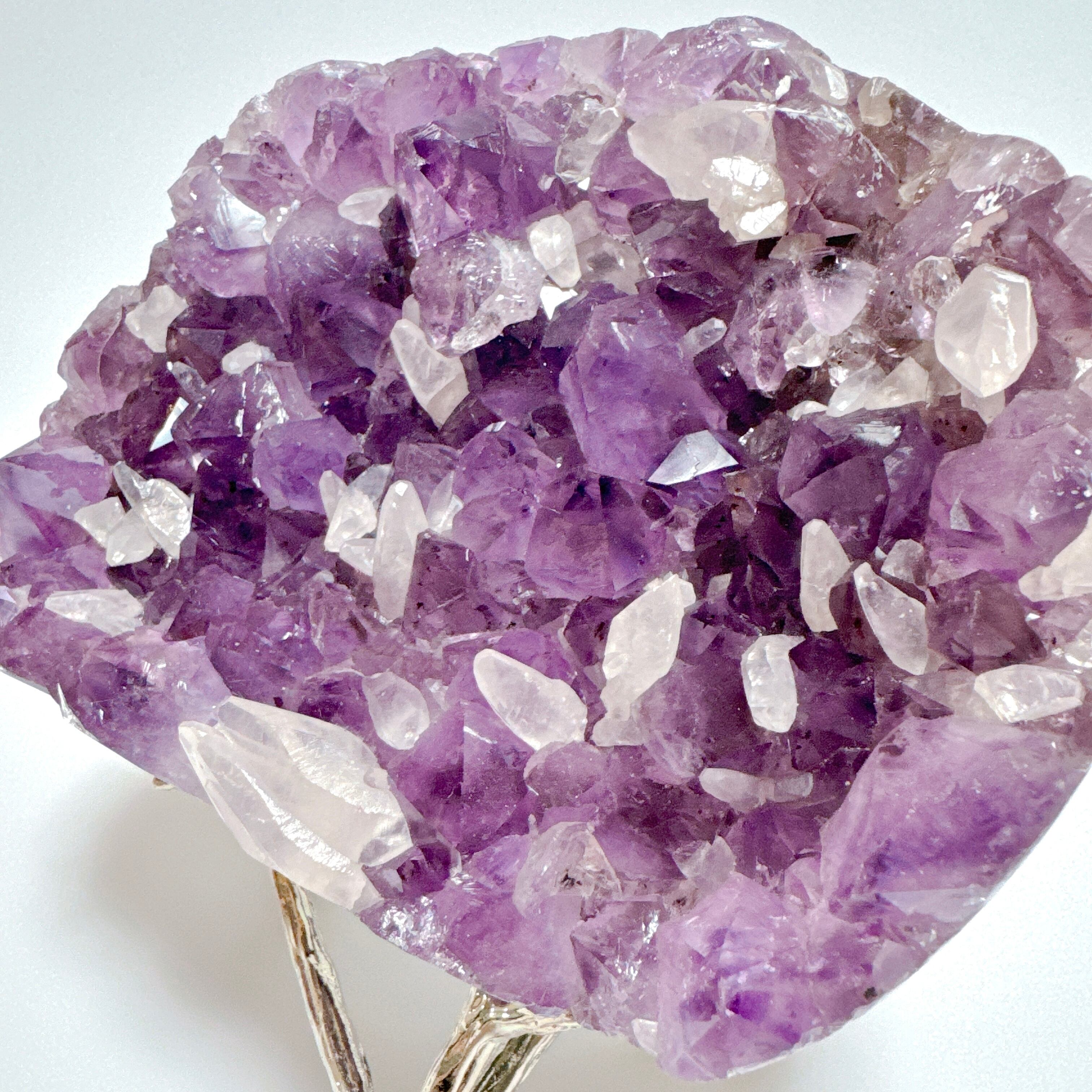 ウルグアイ産 アメジスト クラスター カルサイト共生 原石 天然石