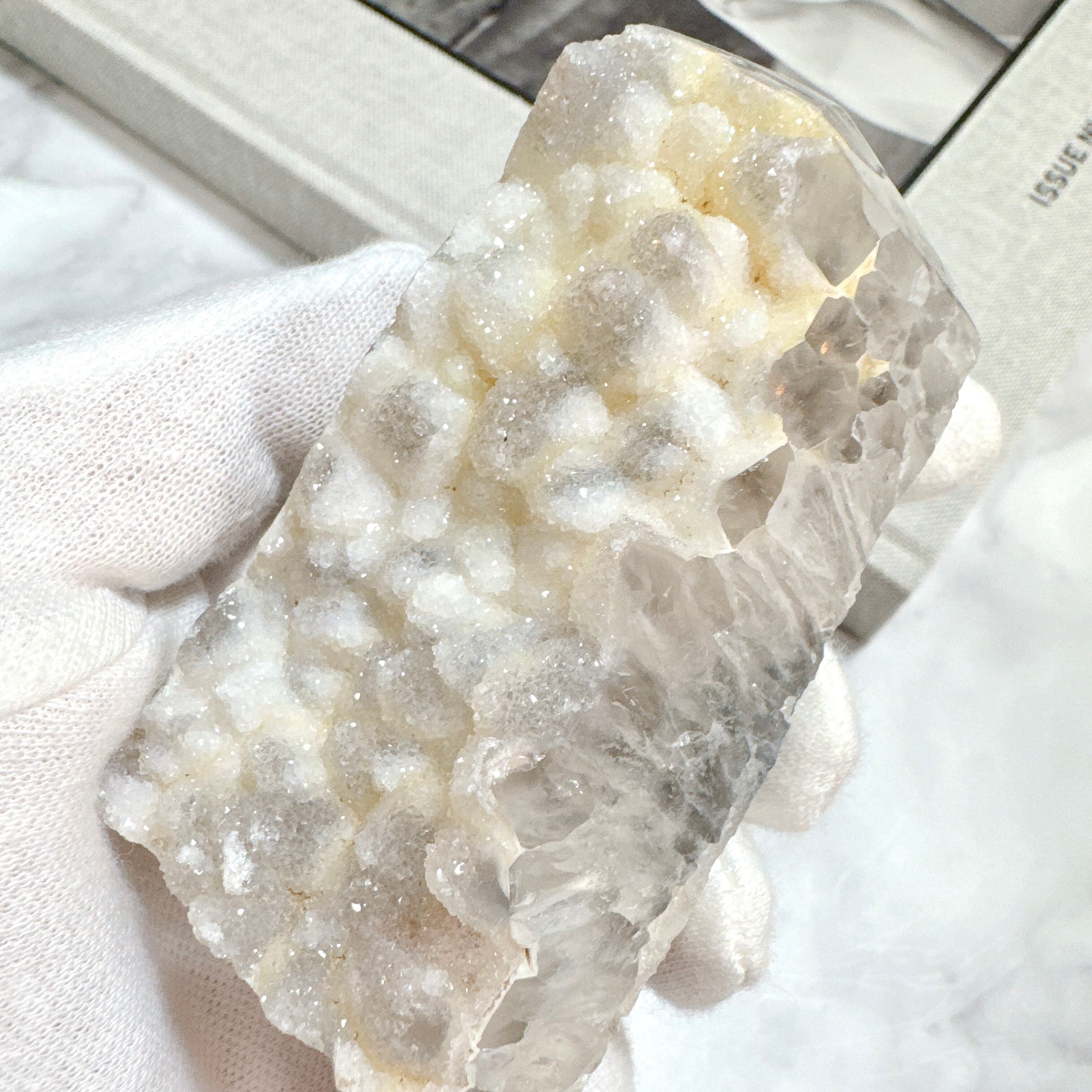クォーツの結晶の上に、さらに小さな結晶が重なった希少なタイプです。