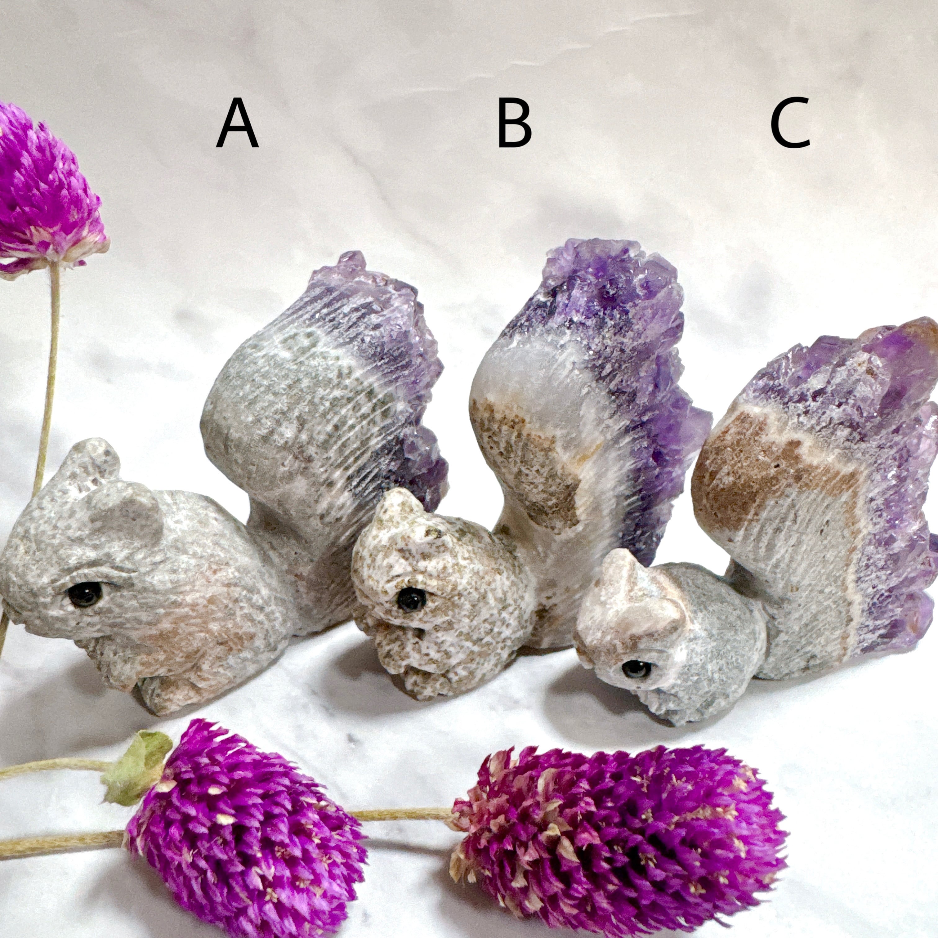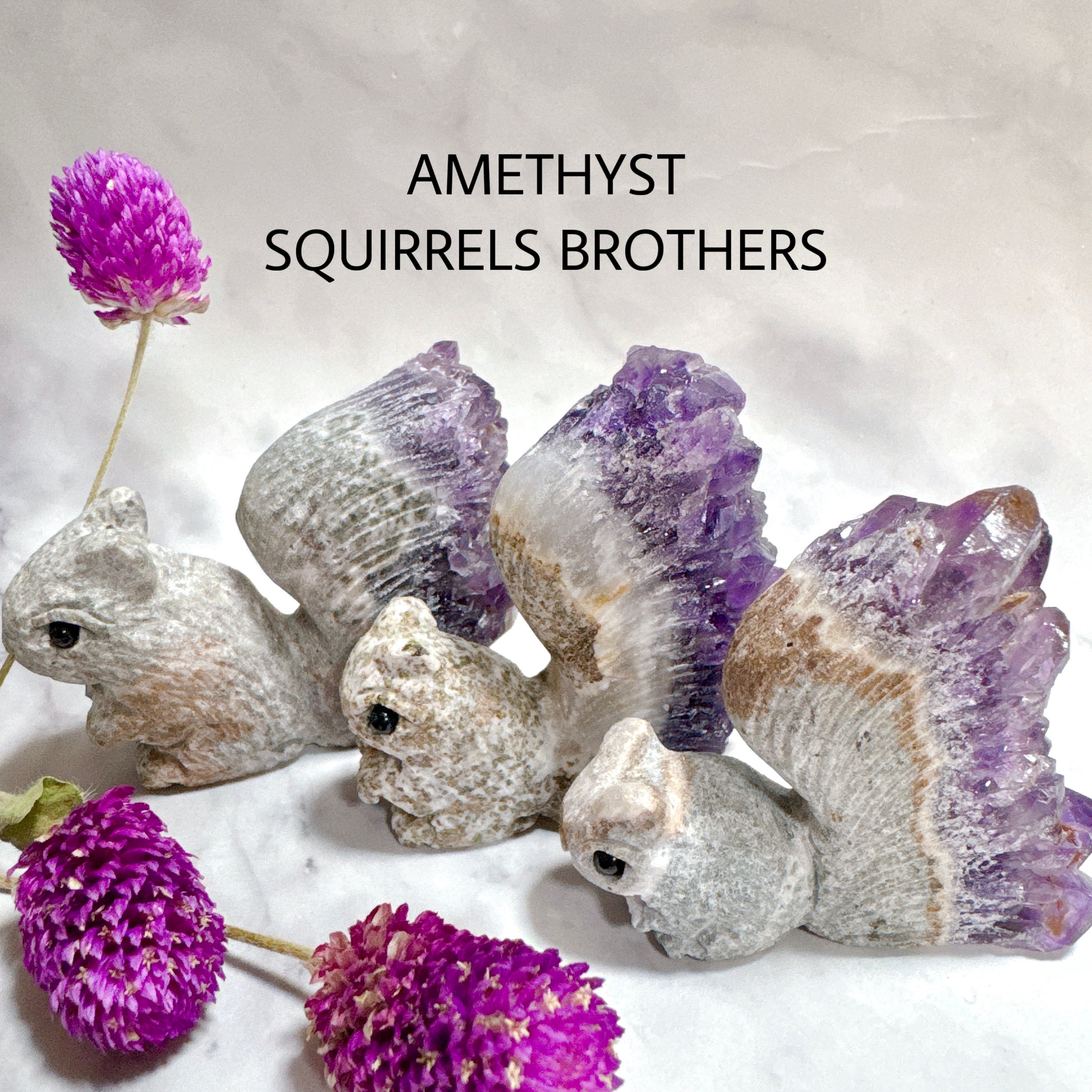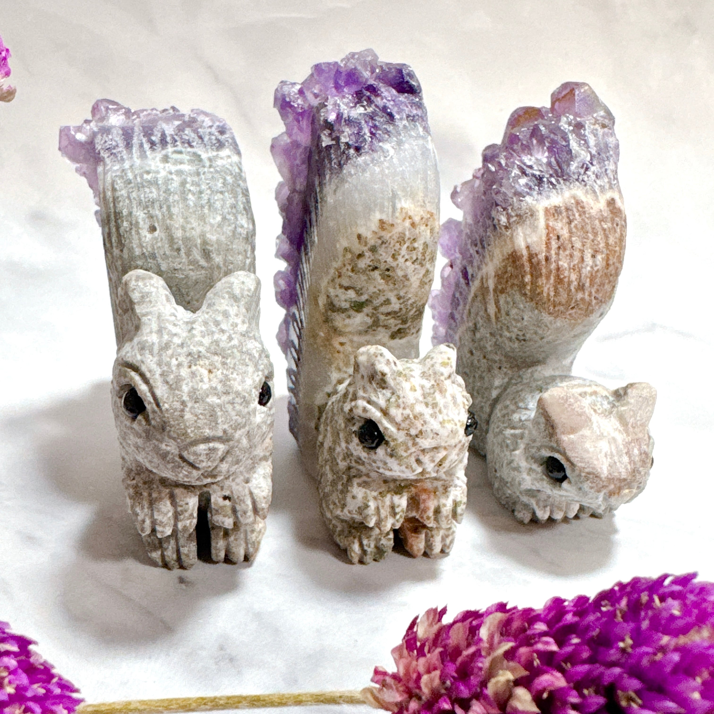 アメジストクォーツクラスターのリス カービング。